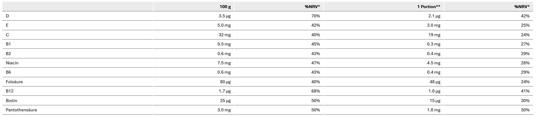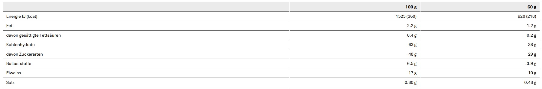 - Die prebiotischen löslichen Nahrungsfasern fördern die Verdauung und unterstützen die Darmflora, was einer verbesserten Nährstoffaufnahme zuträglich ist.