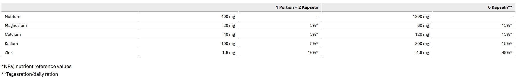 2 Kapseln Salt Caps mit 400 mg Natrium, entsprechen 750-1000 ml Sportdrink