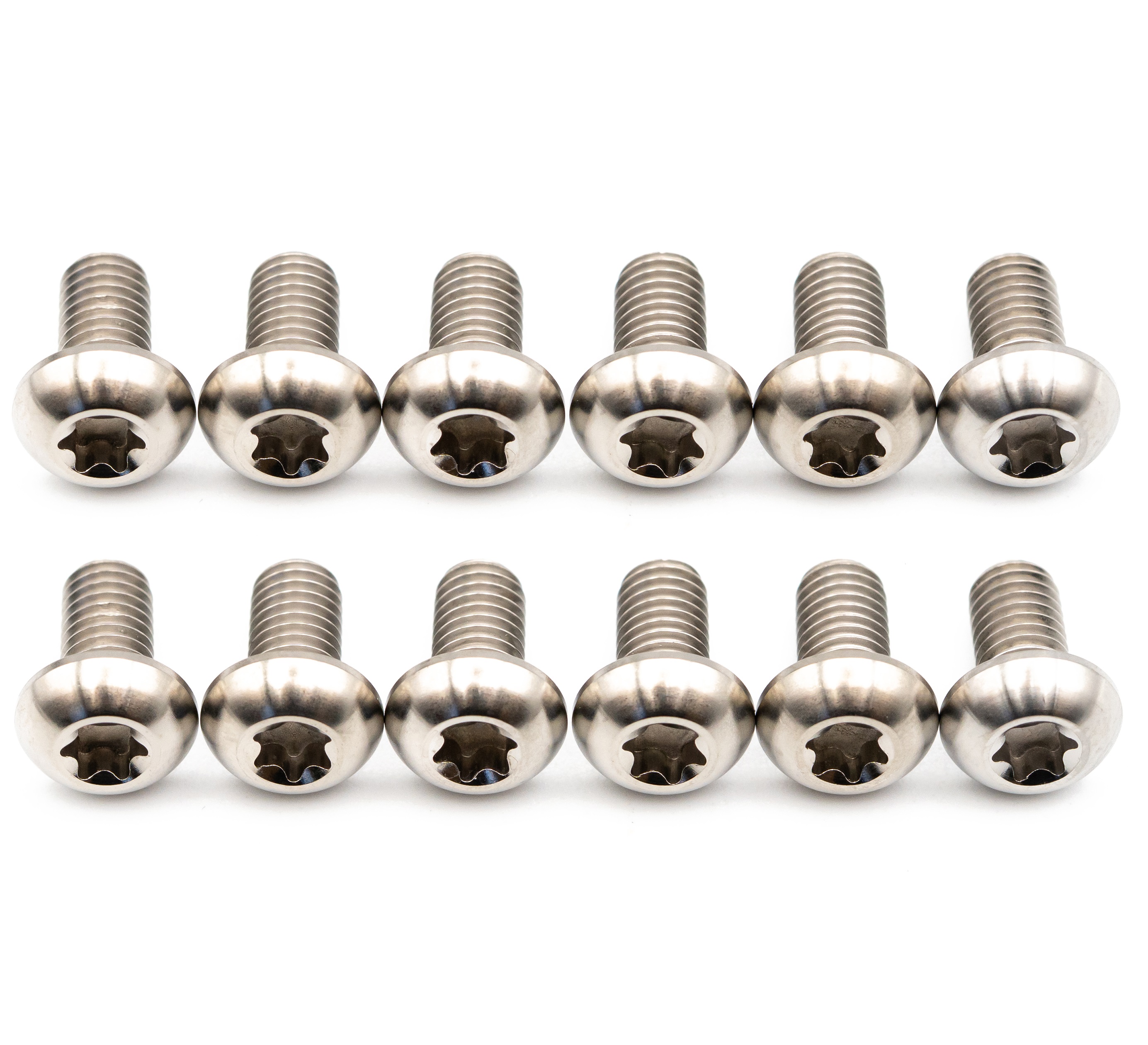 Better Bolts Titan Schrauben Kit passend zu 6 Loch Bremsscheiben. Es wird empfohlen bei der Montage blaues Loctite Schraubensicherung auf das Gewinde sowie Anti-Seize Fett hinter dem Schraubenkopf aufzutragen.