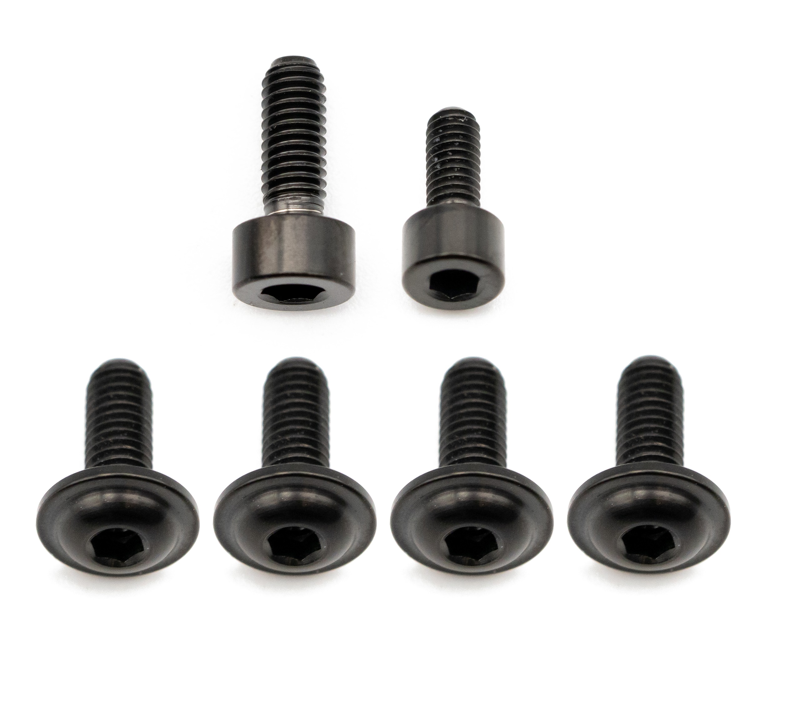 Better Bolts Titan Schrauben-Kit, passend für die Fox 36 SL Grip/Grip2/GripX/Grip X2/Rhythm (2026+) Federgabeln. Das Kit beinhaltet eine Schraube für die Befestigung der Bremsleitung M3 x 8mm, eine Schraube zur Fixierung des blauen Druckstufen-Einstellhebels Grip SL M3 x 6mm und vier Schrauben für die Mud Guard Schutzblechbefestigung.