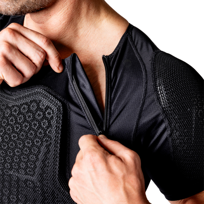 Die integrierten Brust-, Schulter- und Rückenprotektoren sorgen für zuverlässige Rundum-Abdeckung. Der Level-2-Rückenprotektor überzeugt mit exzellenter Aufpralldämpfung, hoher Atmungsaktivität, Flexibilität und Reissfestigkeit – für ein sicheres Fahrgefühl auf jedem Trail.