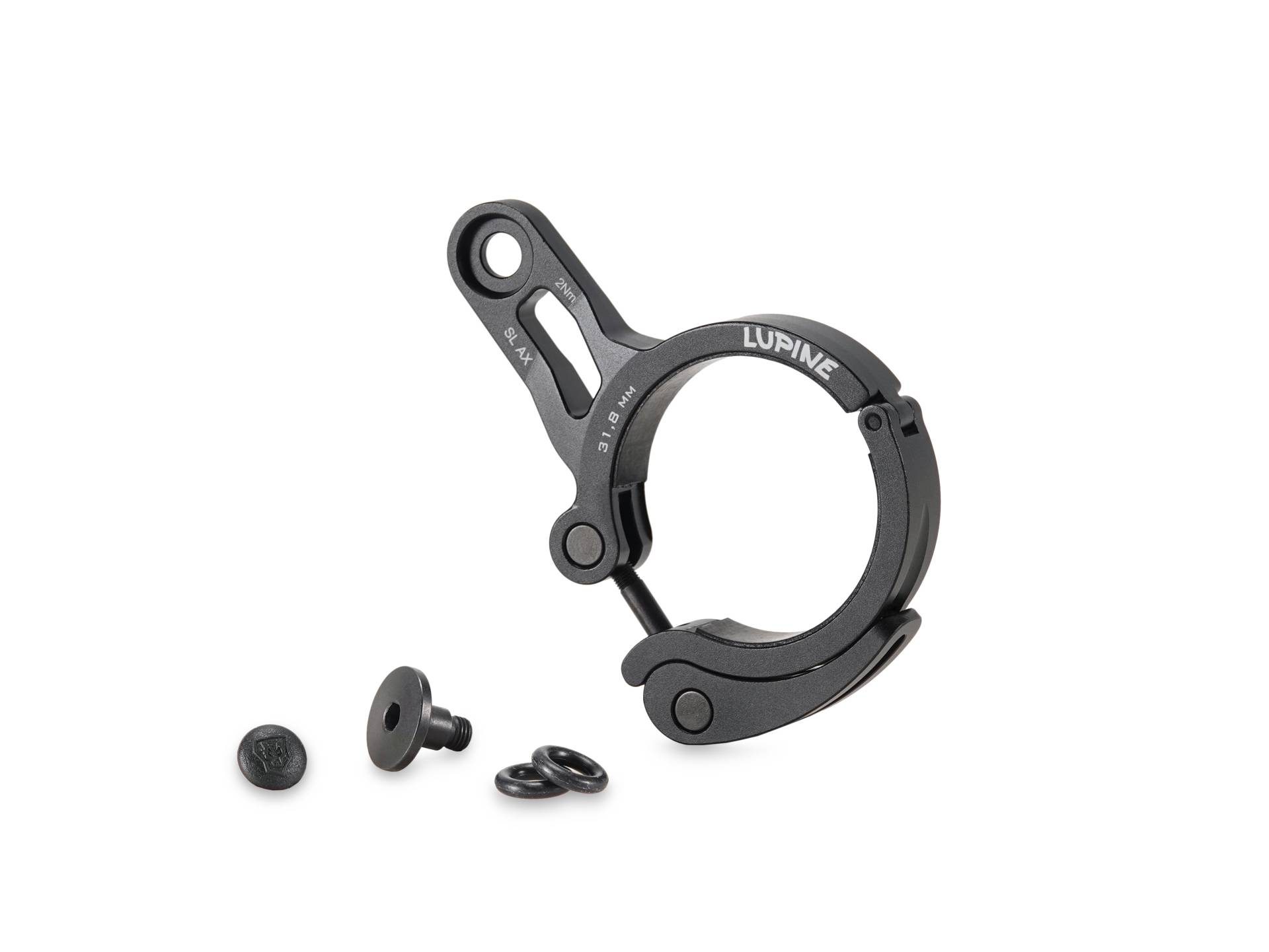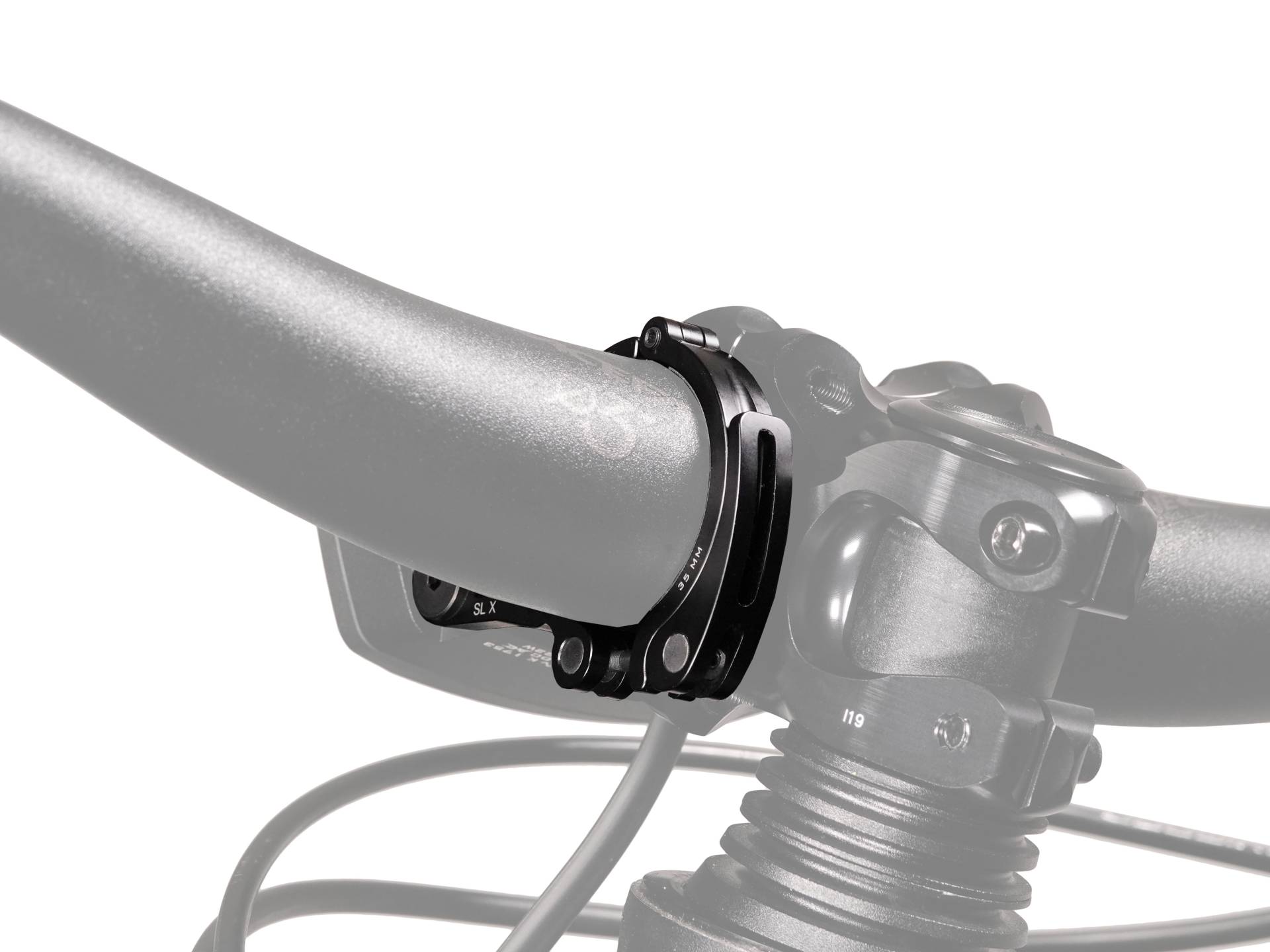 Schnellspanner für die SL AX zur Montage an Stangen mit passendem Durchmesser. Er besteht aus CNC-gefrästem, schwarz eloxiertem Aluminium. Die Gummiauflage verhindert Kratzer und sorgt für festen Halt. Abstand vom Befestigungsloch der Halterschraube zum Halterrand ca. 20mm, Schellenbreite 9mm.