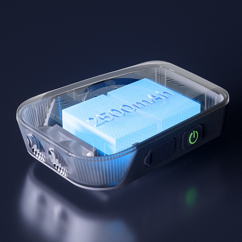 Grosser Akku mit 2500 mAh, der eine Notfall-Aufladung für Fahrradcomputer ermöglicht. Umkehrbarer Stecker zum einfachen Aufladen der Leuchte ohne lästiges Umdrehen auf der Suche nach der richtigen Ausrichtung; integrierte rote Ladeanzeige. Warnungen: 1. Laden Sie Ihr Mobiltelefon oder andere Geräte NICHT mit dem Licht, sonst könnte es das Licht beschädigen und die Garantie erlischt; 2. laden oder entladen Sie das Licht nicht bei Regen.