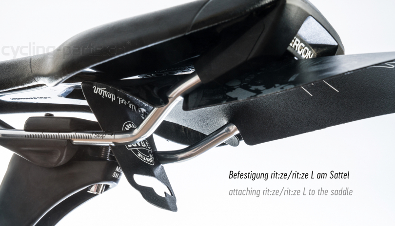 Die „ritze“ von riesel design ist ein Schutzblech gefertigt aus hochwertigem Kunststoff. Befestigt wird das Schutzblech werkzeugfrei zwischen den Streben am Sattel. Über vier Befestigungspunkte wird ein sicherer und fester Halt am Sattel ermöglicht. Konzipiert wurde die „ritze“ als Spritzschutz, um das Gesäß unter widrigen Bedingungen vor Dreck, Schlamm und Wasser zu schützen. INFO: Der Spritzschutz passt systembedingt nicht an Sättel von SQlab mit active-Technologie.