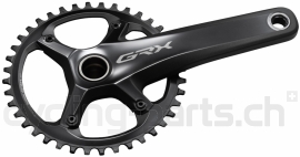SHIMANOs neue Kurbel FC-RX810-1 bietet eine perfekte Synthese aus niedrigem Gewicht und hoher Effizienz für Fahrten auf gemischtem Terrain. Die Übersetzungsoptionen sprechen die speziellen Gravel-Bedürfnisse an und sorgen mit engeren Abstufungen für einen regelmäßigen Rhythmus. Sie wird mit 40Z- und 42Z-Kettenblättern und in den Kurbelarmlängen 170, 172,5 und 175 mm angeboten.