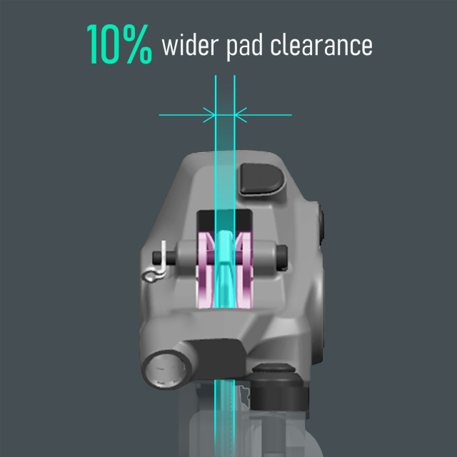 - 10 % größerer Abstand der Bremsbeläge verringert Bremsgeräusche