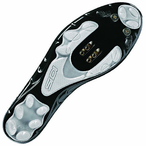 MTB Competition Sole: Carbonfaserverstärkte Nylonsohle mit integrierten Kunststoffeinsätzen für optimale Traktion in Laufpassagen. Austauschbare Gewindeeinsätze im Cleatbereich. Gewindeeinsätze für optionale Stollen. Kompatibel mit allen gängigen MTB-Pedalsystemen.