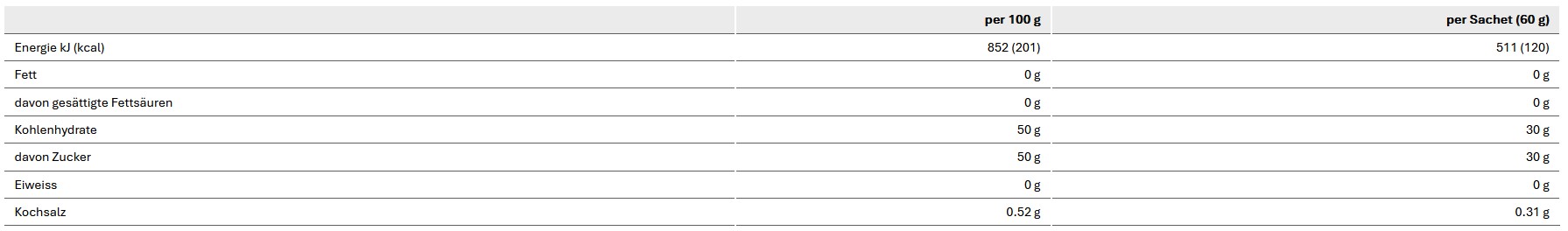 - Kohlenhydrate-Gel mit 50% Kohlenhydratanteil