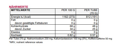 - Kohlenhydrate-Gel mit Koffein