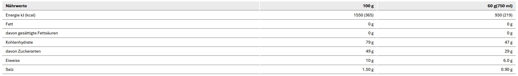 Sportgetränk für Langzeit-Ausdauerbelastungen. Geeignet für Sportler, welche ihre Leistung optimal unterstützen wollen.