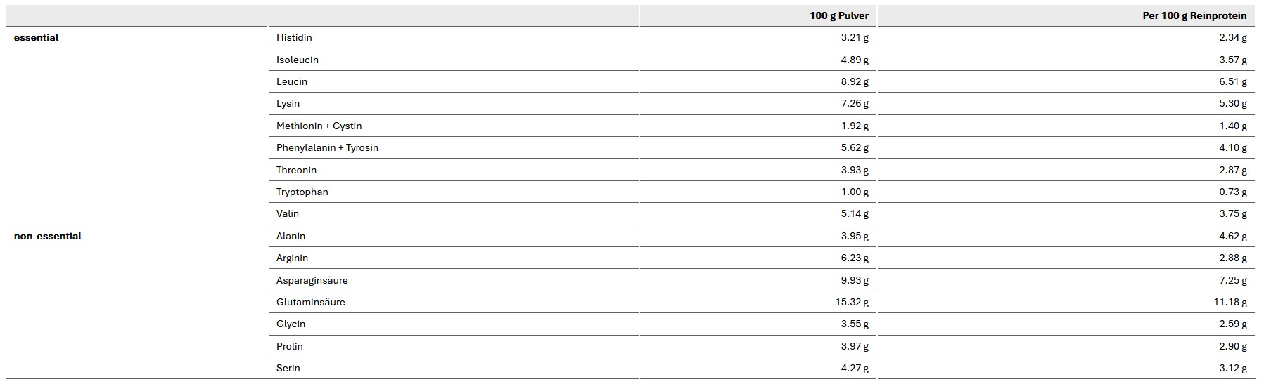 Ideal zur Eiweissergänzung, täglich 1-2 Portionen bei veganer Ernährungsweise, Milcheiweissallergien, Lactoseintoleranz oder Zöliakie (Glutenunverträglichkeit). Zusätzlich zu einer abwechslungsreichen und ausgewogenen Ernährung und einer gesunden Lebensweise.