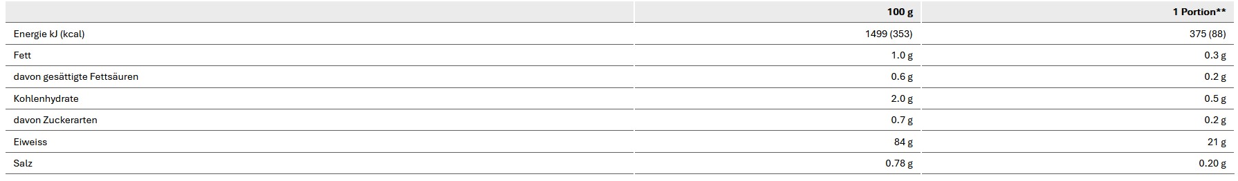 - Höchste Qualitätsstufe und Wertigkeit, «grass-fed» Whey