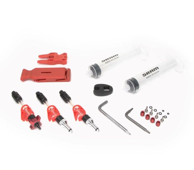 Benutzerfreundliches Profi Servicekit V2 kompatibel mit allen hydraulischen Sram und Avid DOT Bremsanlagen. In wenigen Schritten, die in der Bedienungsanleitung übersichtlich erklärt werden, lassen sich sämtliche Luftblasen zuverlässig aus Bremsleitung, Bremssattel sowie Hebel entfernen und das auch noch tropffrei. Dank Avids Entlüftungskits gehören Lufteinschlüsse, welche die Bremsenperformance gefährden, der Vergangenheit an.