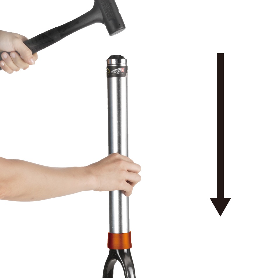 Mit dem Super B TB-1938 schlagen Sie den Gabelkonus des Steuersatzes einfach und plan auf die Gabel. Verwenden Sie die passende der sechs mitgelieferten Adapterbuchsen und achten Sie darauf, dass der Gabelkonus nicht verkantet (schief) aufgesetzt wird.