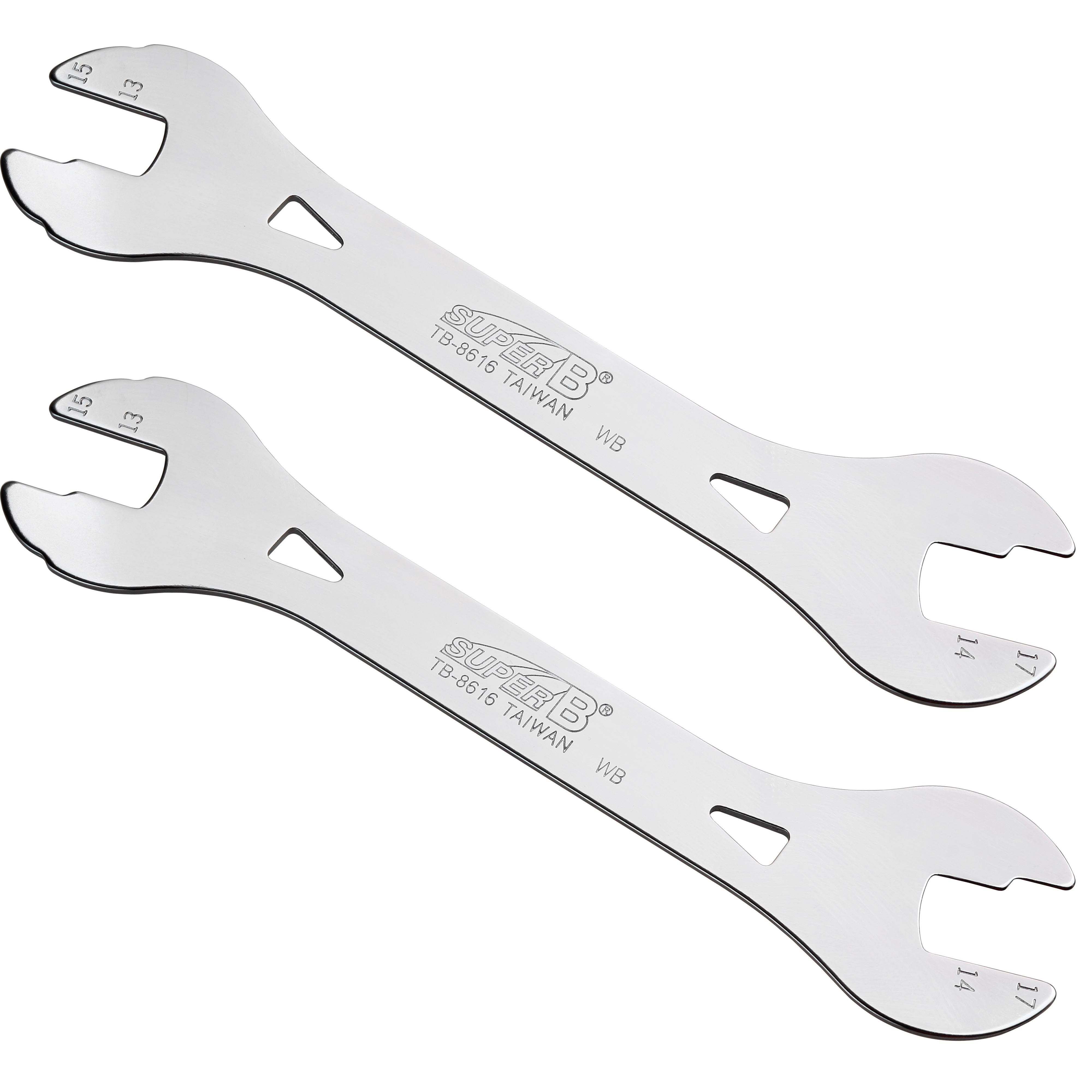 Das Super B TB-8616 ist ein praktisches Konusschlüssel-Set, das speziell für die Einstellung und Wartung von Fahrradnaben-Lager entwickelt wurde. Dieses Set besteht aus zwei flachen Gabelschlüsseln, die durch ihre geringe Dicke perfekt in die schmalen Schlitze von Nabenkonen passen. Jeder Schlüssel ist als Doppelmaulschlüssel ausgeführt, wodurch das Set insgesamt vier gängige Grössen abdeckt: 13, 14, 15 und 17 mm. Gefertigt aus hochwertigem, wärmebehandeltem SK5-Stahl, der für seine besondere Härte und Langlebigkeit bekannt ist.