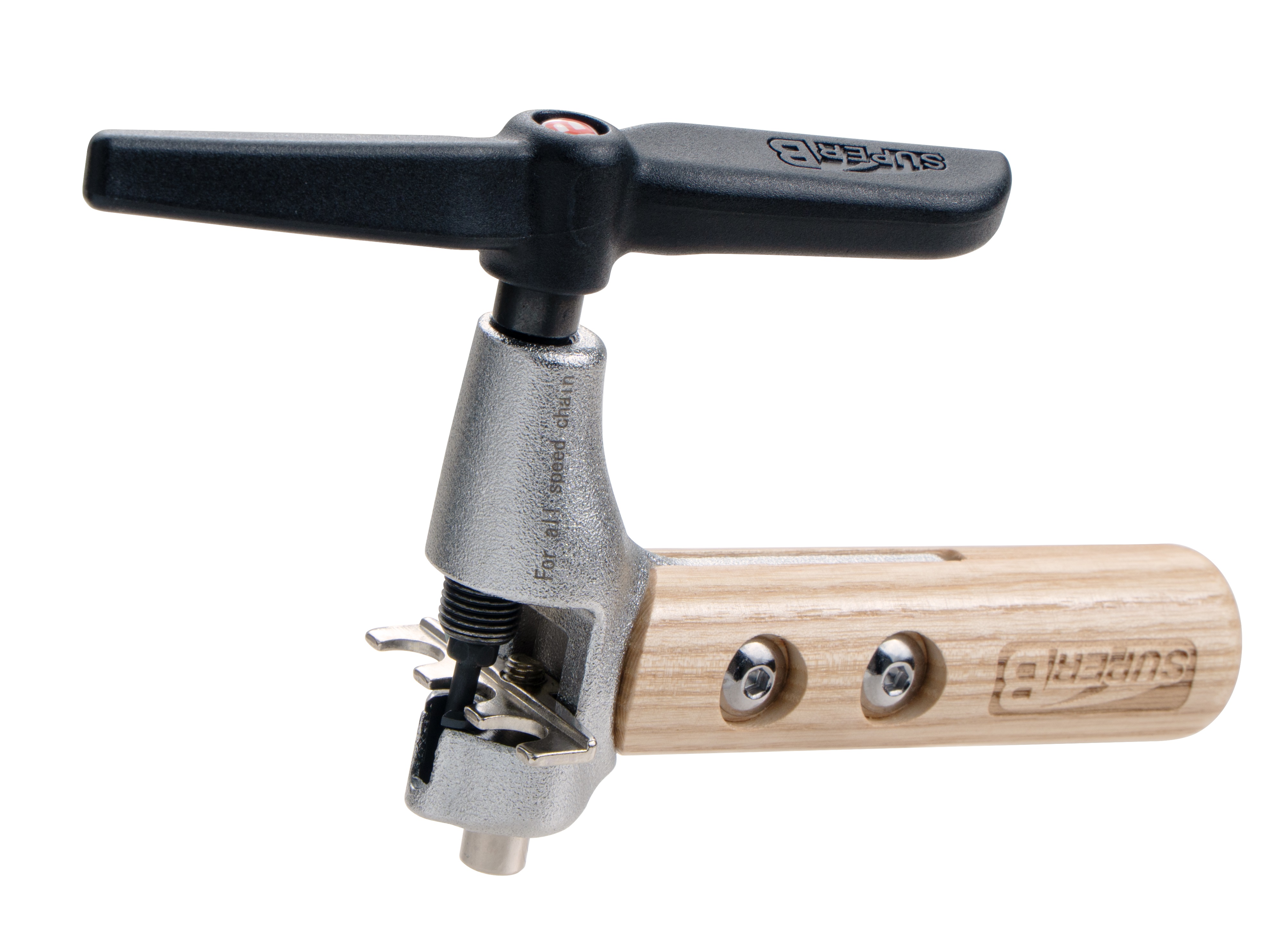 Der Super B TB-CC65 ist ein hochmoderner Universal-Kettennieter für professionelle Werkstattansprüche. Komatibel mit 5- bis 13-fach Ketten inkl. Campagnolo, jeoch nicht geeignet für SRAM T-Type, SRAM Flattop und Shimano XTR 12-fach Ketten. Gefertigt aus hochwertigem Stahl mit einem ergonomischen Griff aus Holz.