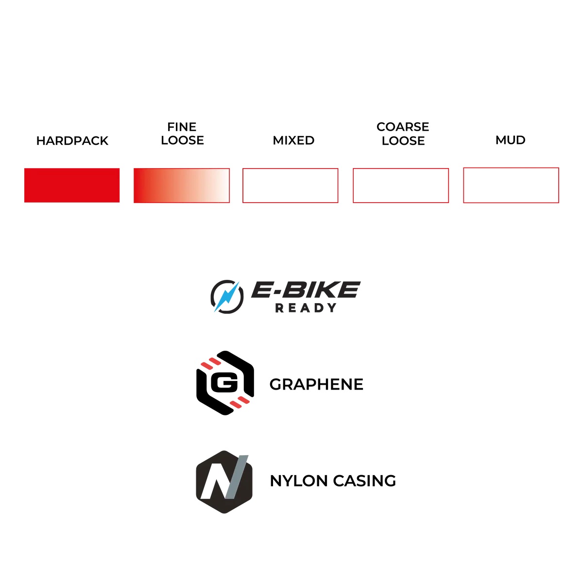 Diese fortschrittliche Gummimischung wurde für maximale Haltbarkeit, Griffigkeit und Langlebigkeit entwickelt und mit Graphen angereichert, um die Leistung unter den unterschiedlichsten Bedingungen zu verbessern. Sie wurde für Zuverlässigkeit bei jedem Wetter und den Einsatz über lange Strecken entwickelt und sorgt für gleichbleibende Traktion und Effizienz, wenn es darauf ankommt.