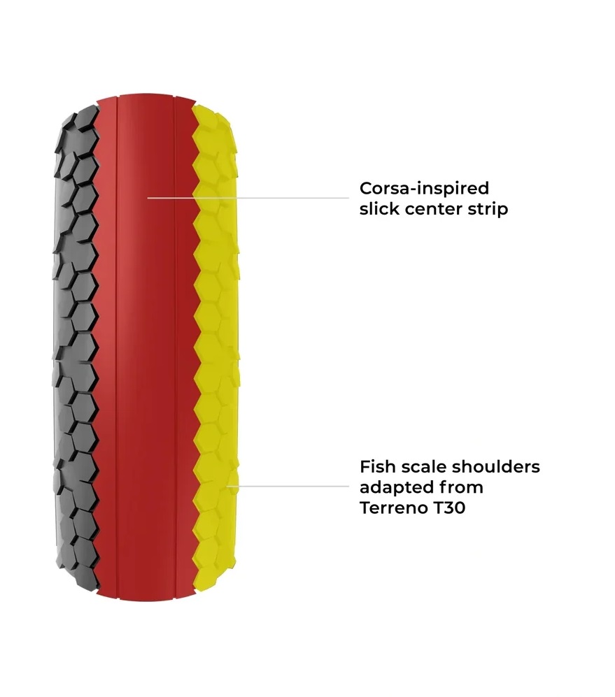 Mit einem T-Score von 10 ist der Terreno T10 (ehemals Terreno Zero) ideal für Fahrer, die die meiste Zeit auf Asphalt oder hartem Schotter unterwegs sind, aber einen Reifen suchen, der auch gelegentliche Umwege souverän meistert. Der T10 wurde für maximale Effizienz auf festem Untergrund entwickelt und rollt mühelos, während er gleichzeitig den für das Gravel-Fahren im Alltag erforderlichen Grip bietet – damit ist er die erste Wahl für Veranstaltungen mit gemischten Abschnitten oder schnelle Ausdauerfahrten. Der Terreno T10 Hardpack Gravel Endurance Reifen ist das strasseneffizienteste Modell der Vittoria Gravel Endurance-Reihe und wurde für Geschwindigkeit und Kontrolle auf kompakten Oberflächen entwickelt. Das Herzstück des T10 ist die Endurance-Formulierung von Vittoria mit Graphen, die bewährte Haltbarkeit, Wetterbeständigkeit und konstante Leistung über alle Jahreszeiten und Oberflächen hinweg bietet. Ein von Corsa inspirierter, schnell rollender Slick-Mittelstreifen wird mit revolutionären Fischschuppen-Schultern kombiniert, die vom Terreno T30 übernommen wurden, um zusätzlichen Kurvengrip und eine bessere Navigation auf nassem oder wechselhaftem Terrain zu gewährleisten. Der T10 wurde mit unserer Endurance-Karkasse hergestellt und bietet eine hohe Anpassungsfähigkeit und strukturelle Festigkeit für Langstreckenfahrten. Er ist mit einer Nylon-Seitenwandschutzschicht und einem Pannenschutzgürtel verstärkt, um maximale Zuverlässigkeit und Sicherheit zu gewährleisten. Von Asphalt bis zu schnell rollendem Hartboden bringt der T10 strassenähnliche Effizienz in die Gravel-Welt – mit der passenden Ausdauer.